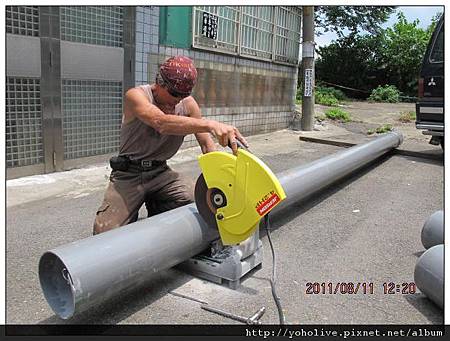先從材料行買了一根直徑20公分寬的塑膠水管,用切斷機切成55-60公分長。
