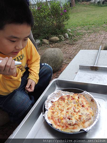 不過我們的窯小巧可愛(黃復興的主人說:這窯小小的很像山豬窯,呵),它ㄧ次只能烤ㄧ個,只好讓大家耐心排隊等候囉。不過沒關係,未來這樣的機會還很多,窯烤披薩未來會是協會的重點發展項目。還有可能會做其他的麵包窯,看完這些照片,你是不是也期待來ㄧ份自己做的窯烤披薩呢?請留意我們未來的活動預告喔。
